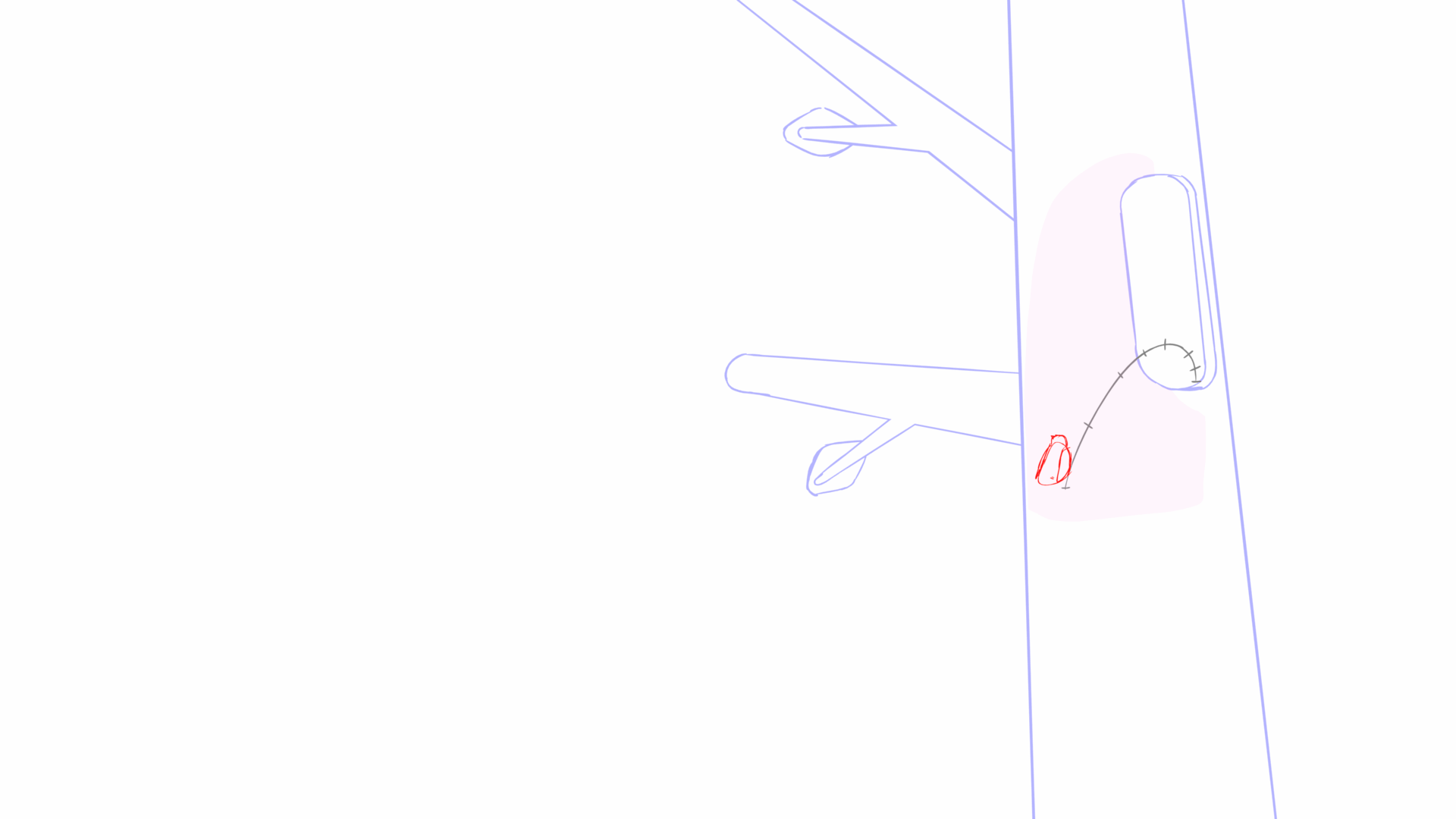 An outline frame by frame animation of a bird hoping into a hole in a tree.