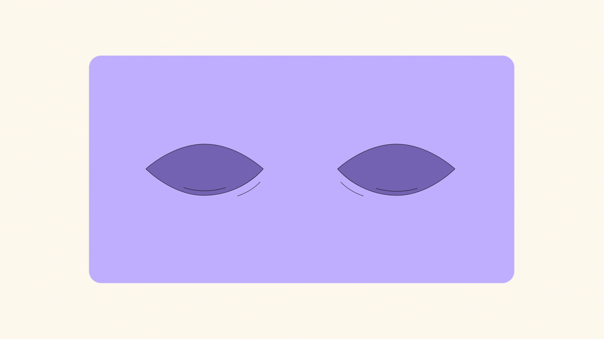 A purple rectangular object with two almond-shaped, dark purple, tired eyes. Animated illustration gif of tired eyes.