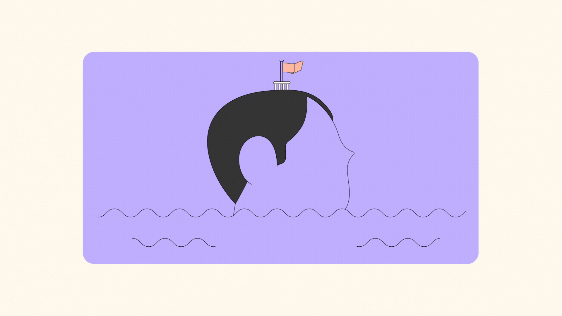 Animated Illustration of a human head with a flag on top. The head appears to be submerged in water and sinking.