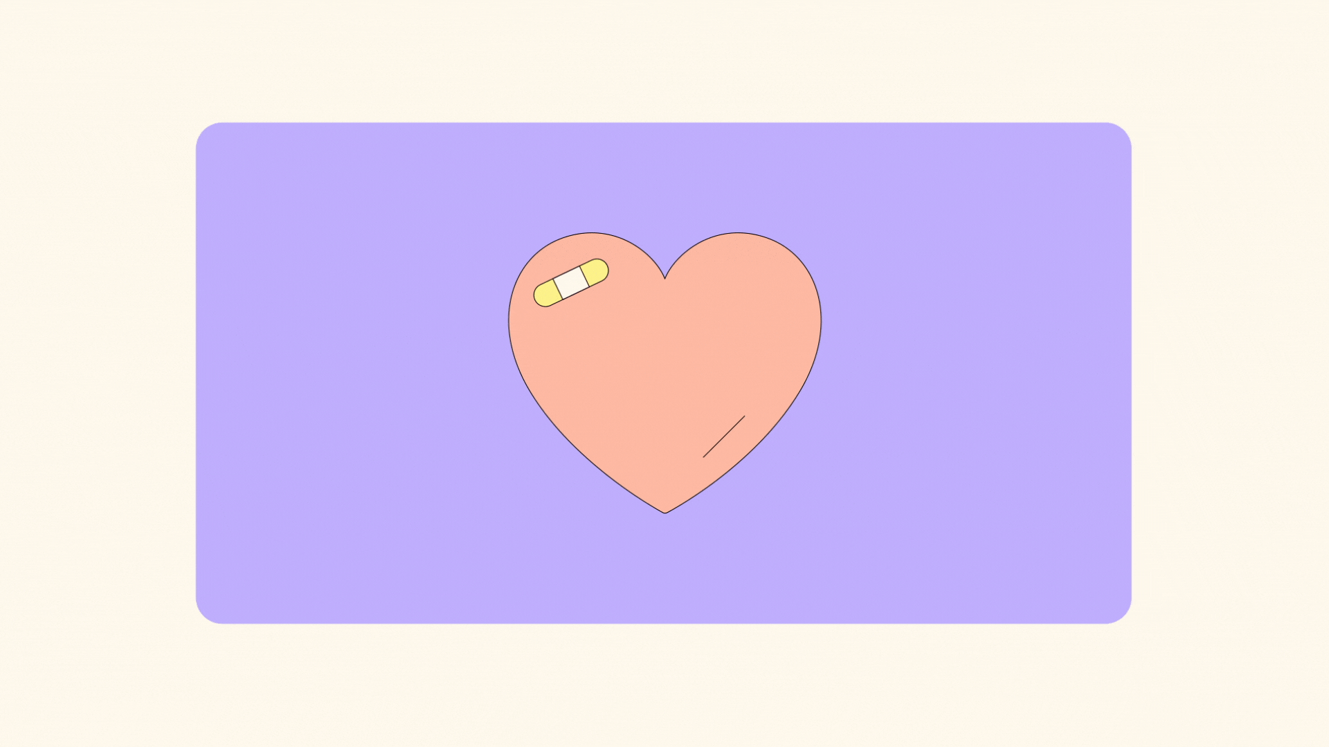 A pink heart with a band-aid on the upper left side, set against a purple rectangular background.